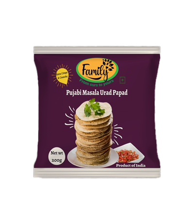 Indulge in the goodness of crunchy urad panjabi masala papad which is tasty and healthy along with your meals which is also low in fat and protein rich.